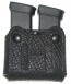 The Double Take Shark is not a Stocking Item. This exceptional double magazine carrier made from the highest quality of shark skin is light weight and comfortable and has potential for a rapid reload if needed. It features double tension screws for adjustment of the draw and two pull the dot snaps for added security. These are one way snaps and will only snap on and off when pulled in a specific direction. These snaps are used for additional security, when it is imperative that the magazine carrier's snap does not come undone. The Double Take Shark is not molded to the exact magazines by design. It is made to fit Single Column and Staggered Magazines. The Double Take Shark fits up to a 1-3/4" belt (1-1/2" is optimum) and is available in the best shark skin on the market.